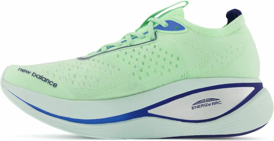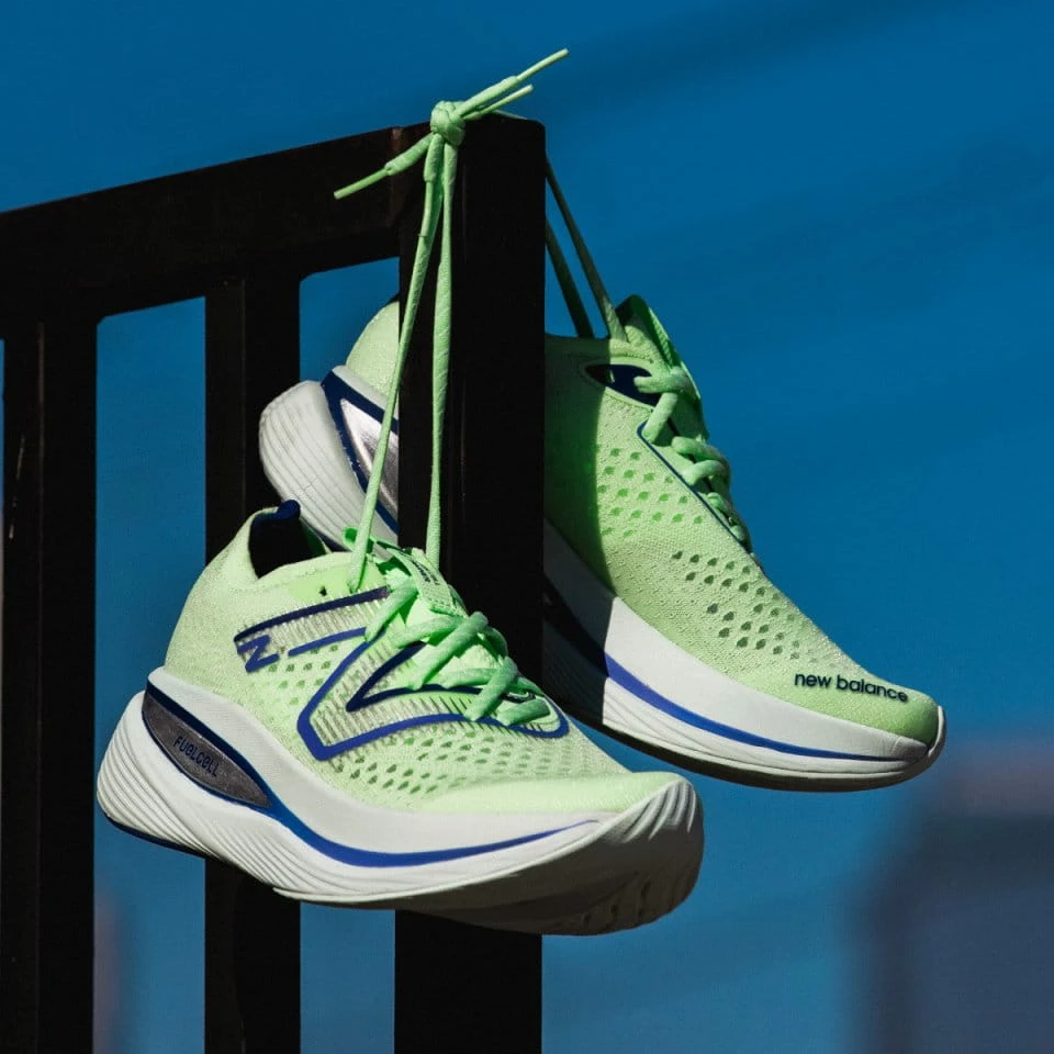 The FuelCell SuperComp Trainer brings the seconds count performance of energy-return technology from race day to a high milage training shoe. In this execution of new Energy Arc technology, a stacked height midsole houses an arched carbon fiber plate, sandwiched between two layers of FuelCell cushioning, leaving a hollow channel through the middle of the shoe. The plate is flattened into the void with each foot strike, and returns energy as it reshapes, creating a high rebound sense of propulsion. The FuelCell SuperComp Trainer is designed to look, feel, and perform differently.
